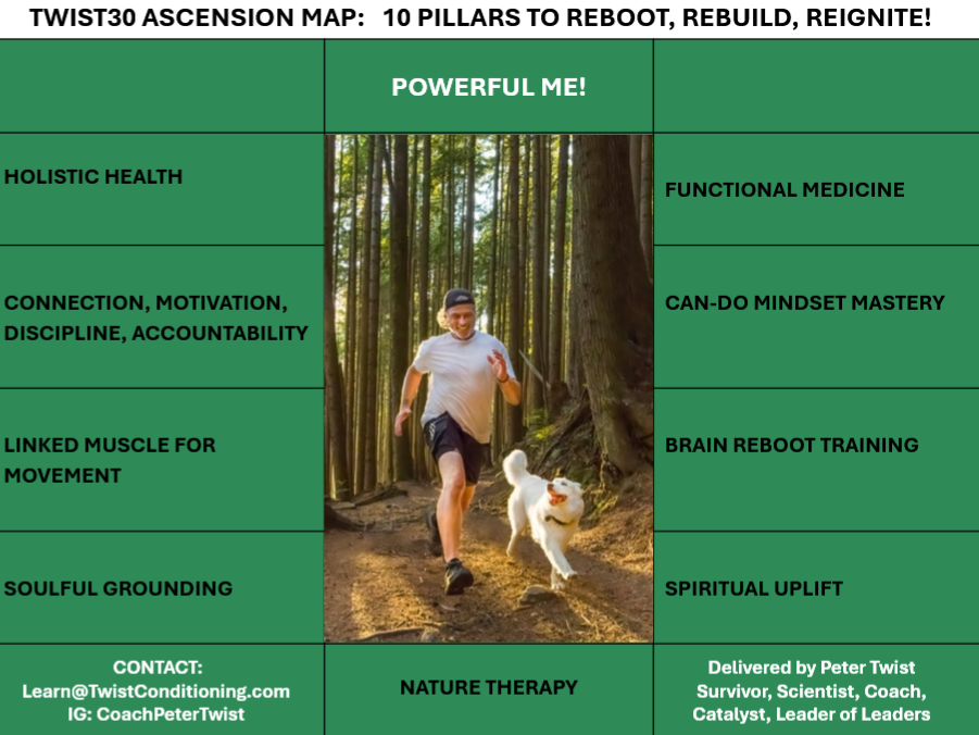TWIST30 combines the signature TWIST programming from our 12 award winning functional training facilities, with the certifications and conference lecture content Peter Twist delivers globally, with his live in person rainforest retreats hosted in Vancouver Canada.